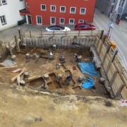 1. scavo di un locale rettangolare a destra dell’ingresso e di un prolungamento con pozzo-lucernario sul lato di fondo,