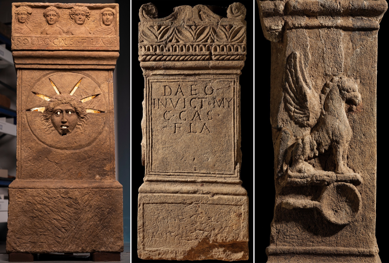 Per la prima volta saranno esposti due altari mitraici eccezionalmente rari e splendidamente scolpiti, rinvenuti nel 2010 a Inveresk, East Lothian in Scozia. Non solo sono gli unici altari romani scoperti in Scozia, ma rappresentano tra i massimi esempi di scultura romana in Britannia, datati al 140 d.C. durante la rioccupazione della Scozia meridionale da parte di Antonino Pio – insolita precocità rispetto al III secolo tipico del culto mitraico britannico.